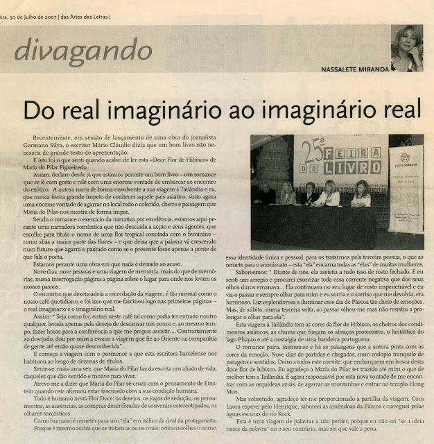 Texto de Nassalete Miranda no "Das Artes e das Letras" de 30 de Julho de 2007: