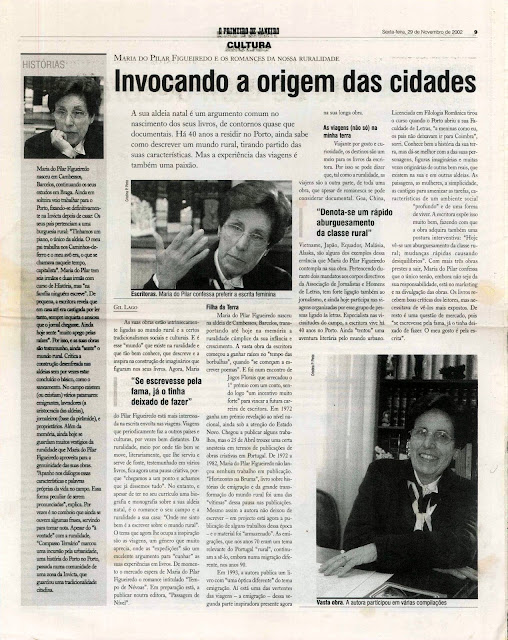 Maria do Pilar Figueiredo e os romances da nossa ruralidade - O Primeiro de Janeiro, 29 de Novembro de 2002